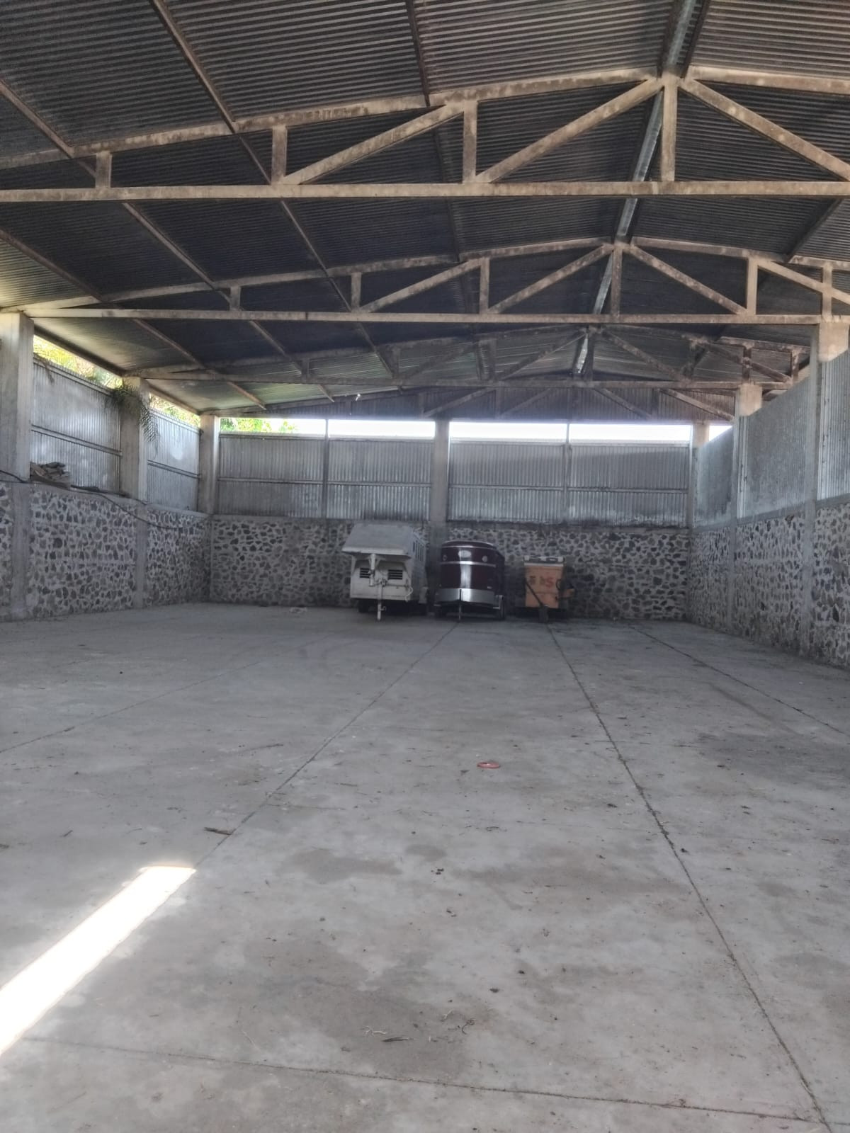 • Bodega de 40 metros de frente por 60 metros de fondo con una altura de 10 metros, con mampostería de 5 metros de alto por 1 metro de ancho,